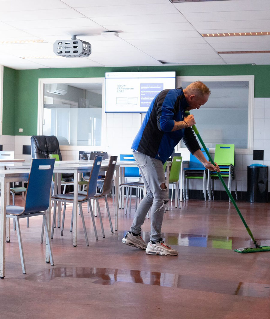- Periodieke vloerbehandelingen zoals schrobben, polijsten en coaten.